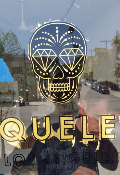 Gold leaf lettering or graphics can be applied to glass or other non-porous material.